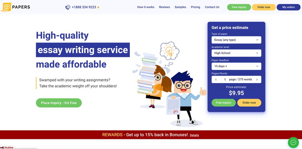 The prices at paper 99 are quite reasonable. You can order an essay in as little as three hours and pay in installments. The website contains a detailed description of their algorithm and numerous sample papers to help you decide on a price. As long as you’re aware of your deadline and don’t have the time to write the essay yourself, 99Papers is a good option. If you don’t have the time to write it yourself, you can still hire a professional writer to complete it for you.